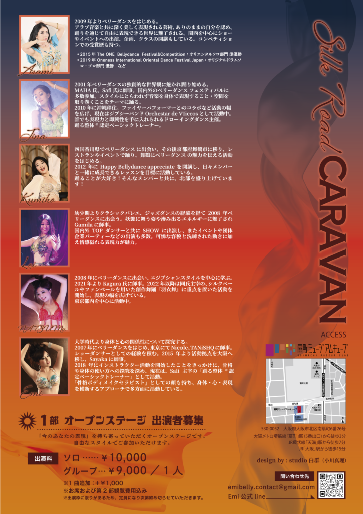 【制作実績】『Silk Road CARAVAN(シルクロード・キャラバン)』チラシデザイン 2026 1/24 宣伝美術 2026年1月24日 【制作実績】『Silk Road CARAVAN(シルクロード・キャラバン)』チラシデザインを担当しました。公演は、2026年3月28日(土)扇町ミュージックキューブCUBE02です。 公演情報はこちら 宣伝美術 【制作実績】婀の会特別公演『あらかん邦楽演奏会』チラシデザイン 関連記事 【制作実績】婀の会特別公演『あらかん邦楽演奏会』チラシデザイン 2026年1月5日 【制作実績】劇団Philos.第四回公演 『フロートマン』チラシデザイン 2025年11月6日 【制作実績】婀の会 邦楽と物語の泉シリーズⅦ『いろは大王狂想曲』チラシデザイン 2025年9月4日 【制作実績】花組芝居『陽炎座』宣伝美術・撮影協力 2025年8月23日 【制作実績】花組芝居 花組ヌーベル ミュージカル『平家蟹』宣伝美術 2025年5月31日